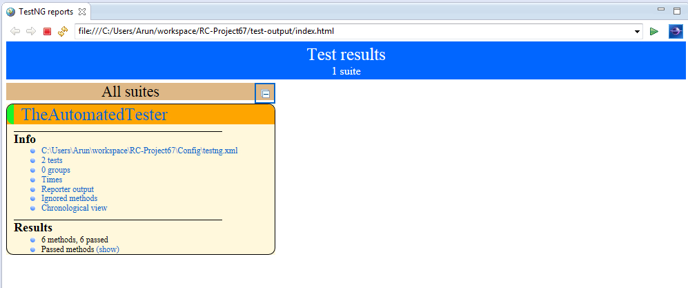 9. Observe that the TestNG test results graphical report is displayed as shown below: